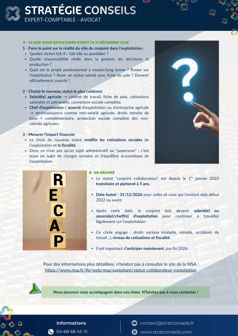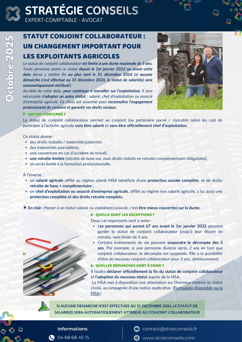 🧑🌾 1. Statut de conjoint collaborateur agricole : changement majeur