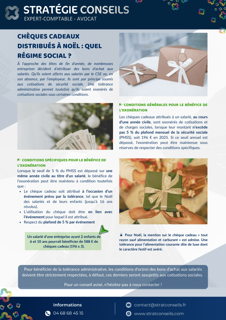 🎁 2. Chèques-cadeaux de Noël : régime social