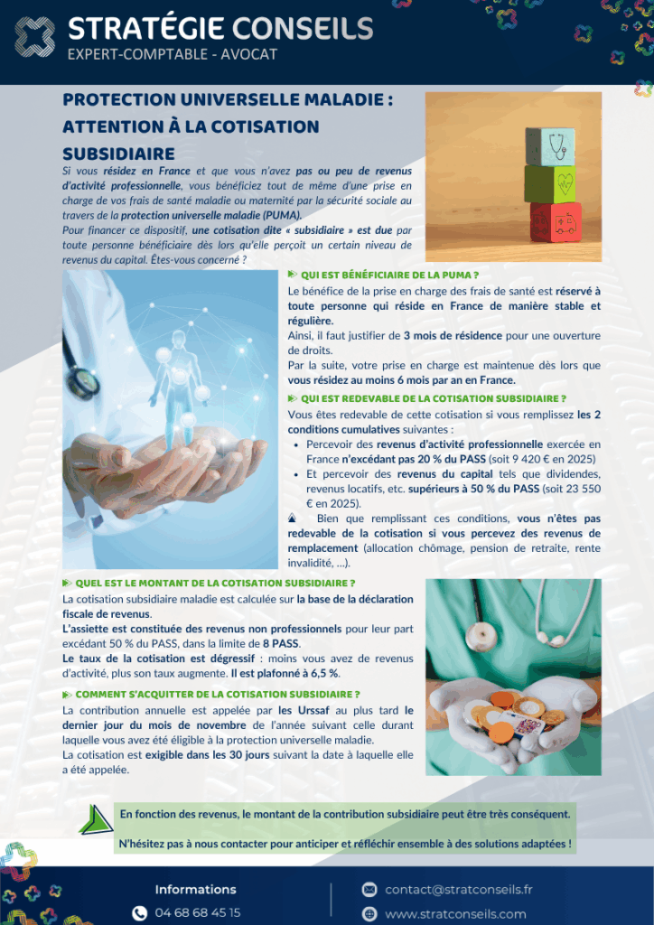 🩺 5. Protection universelle maladie (PUMA) : attention à la cotisation subsidiaire